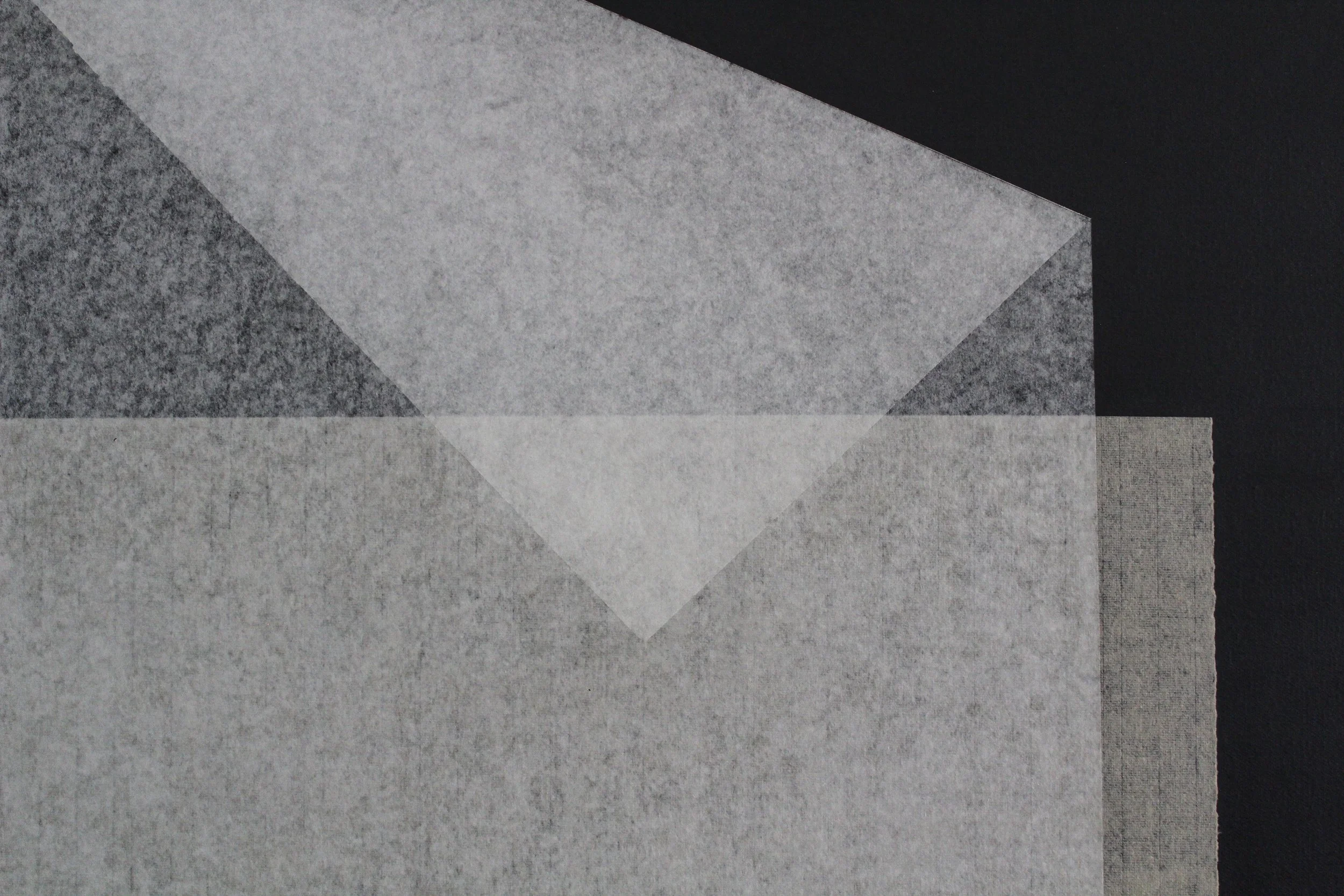 In Veiled Horizons, the paper bends but does not break. Layers are folded inward and outward, shaping a topography of quiet tension—creases rising like ridgelines, valleys dipping into shadow. Each fold interrupts the surface yet holds its own serenity, suggesting landscapes both external and internal, imagined and remembered. The act of folding becomes a kind of inward gesture—an introspection made visible—where thought and material mirror one another in restraint. Unlike the rawness of tearing or the surrender of erosion, folding is an act of containment, an architecture of stillness where fragility and resilience converge. The palette remains subdued and luminous, echoing earth and light. These works reveal not through absence, but through the quiet compression of space, the subtle shifting of tone across ridges, the horizon lines that form when matter and mind alike yield, briefly, to the passing of time.