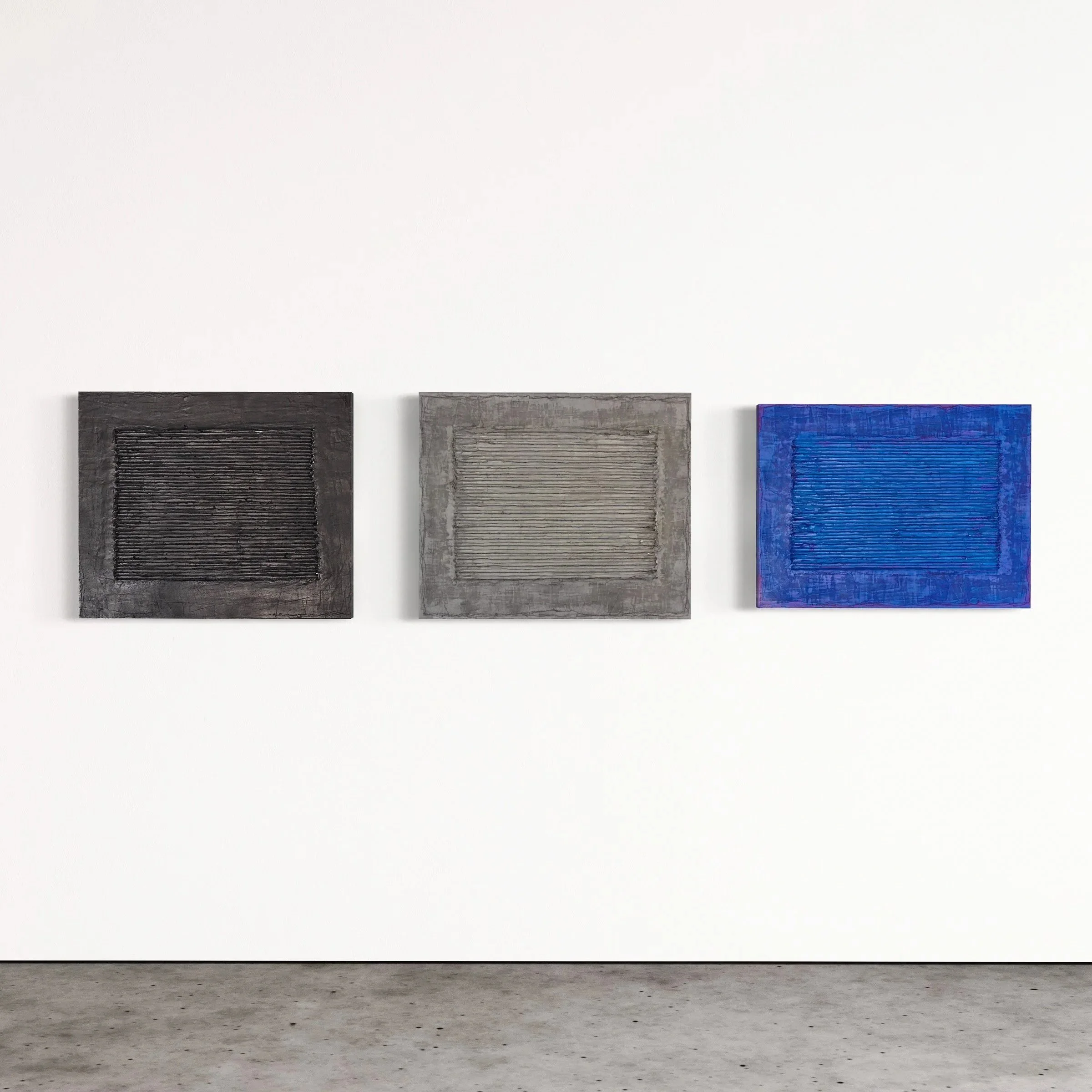 In Meditative Grounds, the surface becomes a mirror of the mind in quiet focus. Layers of paper are stripped, sanded, and pressed into canvas not only to reveal texture, but to trace the slow erosion of thought, the way repetition clears space for stillness. Subtle ridges and muted planes emerge like the contours of an inner landscape, shaped by attention rather than force. The palette remains restrained—soft whites, pale grays, deep blacks, and quiet blues, with faint earth tones surfacing through abrasion, as if light were breathing through distance. Each gesture is deliberate yet unhurried, turning material process into meditation. What remains is a mental terrain made visible: grounded, silent, and poised between release and reflection.